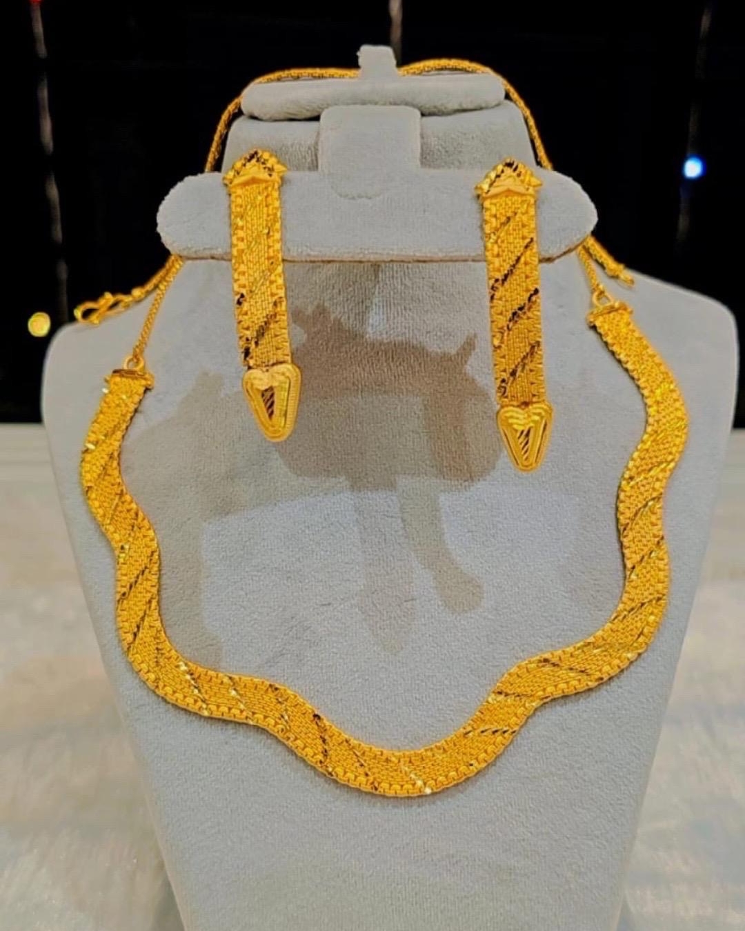 Premium 2-Gram Gold Plated Set: A lightweight, beautifully crafted necklace paired with matching earrings, finished in a rich, glossy gold polish.